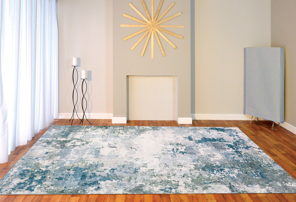 Washable , rubber backed rug that can go in the washing machine on a cold cycle with a mild detergent.Dry flat or on a cool dryer cycle.Machine woven rug from China.Rubber backed so need for anti slip underlay.Manufacturers describe the colour as seafoam.