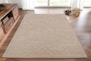 Hand made 100% wool rug. Sculpted pile, Colour for this rug is classed as Taupe by suppliers.