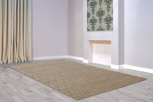 Hand made 100% wool rug. Sculpted pile, Colour for this rug is classed as Taupe by suppliers.